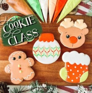Learn to how to pipe and decorate AMAZING cookies like a pro in this FOUR design class! All on fresh-baked cookies. Kellie, your cookier, owner of PLB & winner of ‘Food Network’s Christmas Cookie Decorating’ competition, will guide you to your SWEET designs! Wine, drinks & snacks will be available to purchase during class. Registration is for ONE attendee per set of cookies.